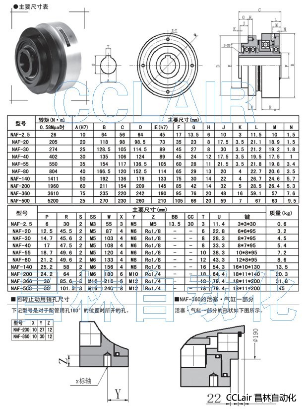 NAF-2.5,NAF-20,NAF-30,NAF-40,NAF-55,空壓齒合式離合器
