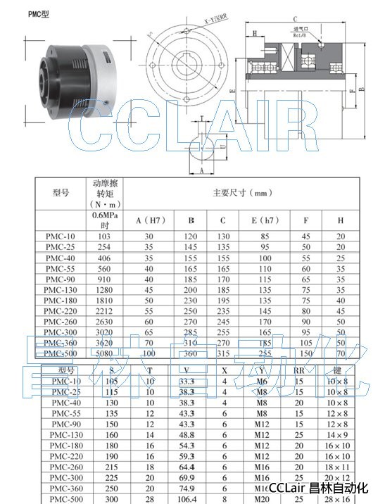 PMC-10,PMC-25,PMC-40,PMC-55,PMC-90,空壓多片式離合器