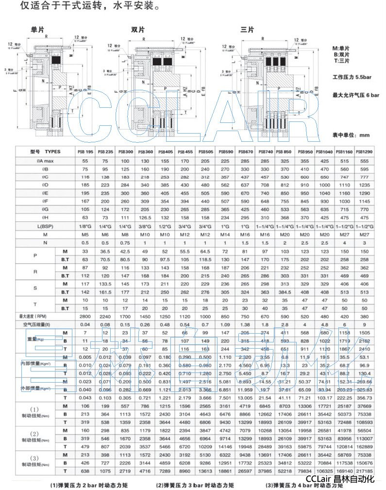 PSB195,PSB235,PSB300,PSB360,PSB405,PSB455,空壓彈簧制動器(氣動釋放)