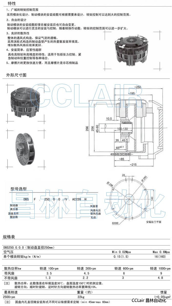 DBS250,空壓多點(diǎn)式制動(dòng)器(強(qiáng)制風(fēng)冷型)