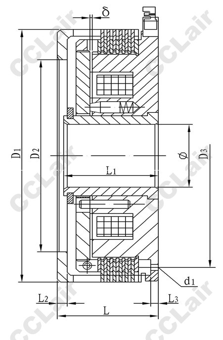 3、摩擦片磨損后,應(yīng)調(diào)整氣隙δ。