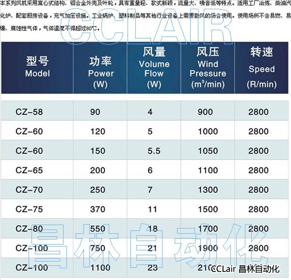 CZ-58,CZ-60,CZ-65,CZ-70,CZ-75,CZ-80,CZ-100,節(jié)能低噪聲中壓通風(fēng)機(jī)