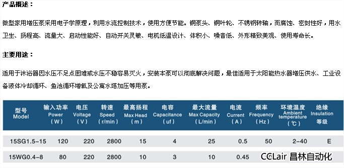 該泵具有體積小、重量輕、安裝方便、并且流量和揚(yáng)程比WG型家用增壓泵都有明顯的優(yōu)勢(shì),全動(dòng)型的操作方法:安裝方法以及自動(dòng)開(kāi)關(guān)保養(yǎng)方面跟WG型家用增壓泵一樣,有替代WG型的趨勢(shì)。