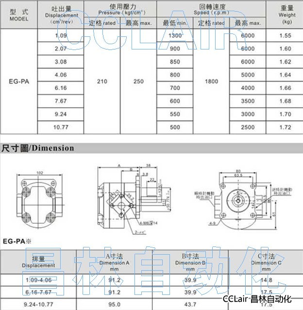 EG-PA-F1R,EG-PA-F2R,EG-PB-F11R,EG-PB-F14FR,DEG-PC,外齒輪泵浦