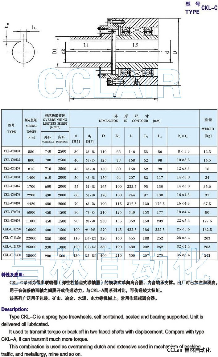 CKL-C30110,CKL-C40125,CKL-C45130,CKL-C50150,CKL-C55165,CKL-C60170,超越離合器
