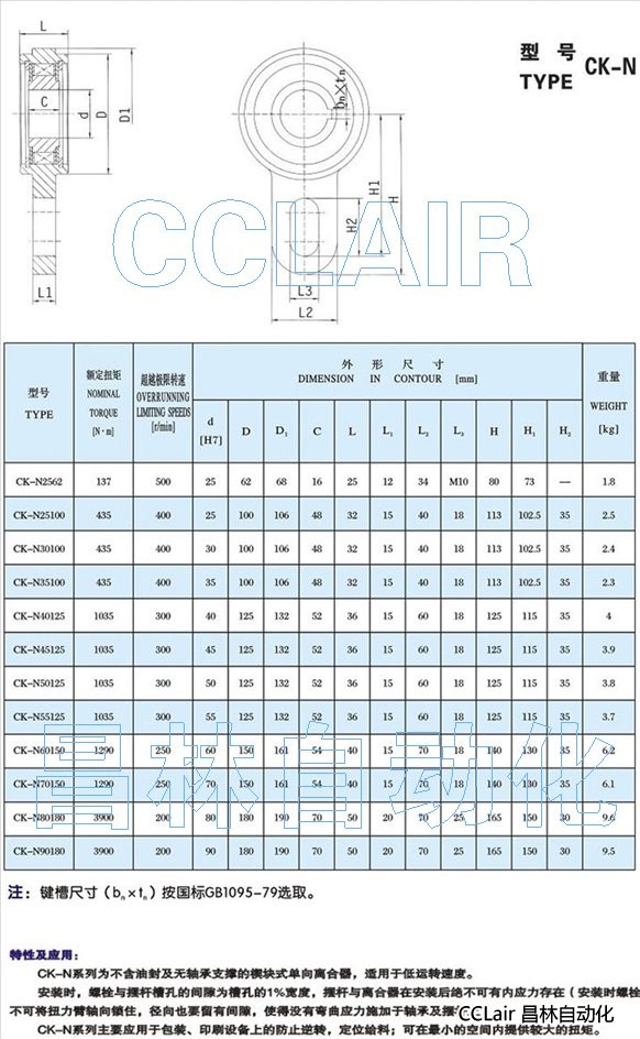 CK-N2562,CK-N25100,CK-N30100,CK-N35100,CK-N40125,CK-N45125,單向離合器
