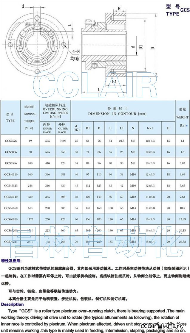 GCS2576,GCS3086,GCS3596,GCS40110,GCS45125,GCS50140,GCS55160,單向離合器