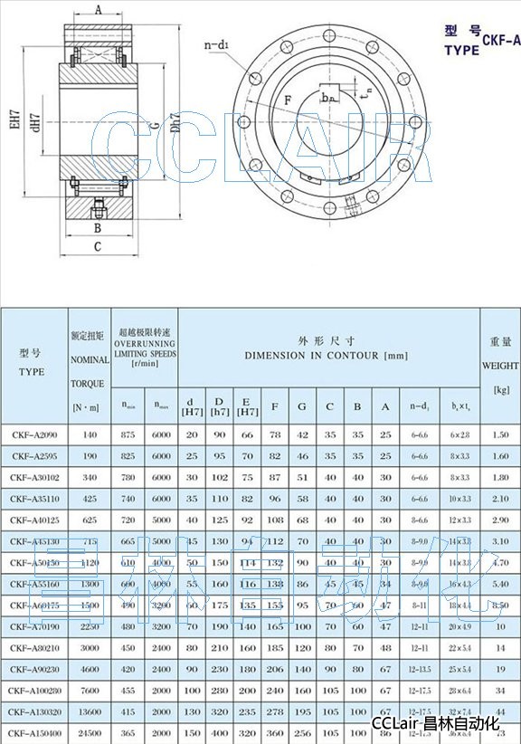 CKF-A2090,CKF-A2595,CKF-A30102,CKF-A35110,CKF-A40125,CKF-A45130,單向離合器