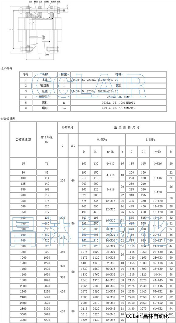 VSSJAF-DN65,VSSJAF-DN80,VSSJAF-DN100,VSSJAF-DN125,VSSJAF-DN150,VSSJAF-DN200,雙法蘭松套傳力接頭 |