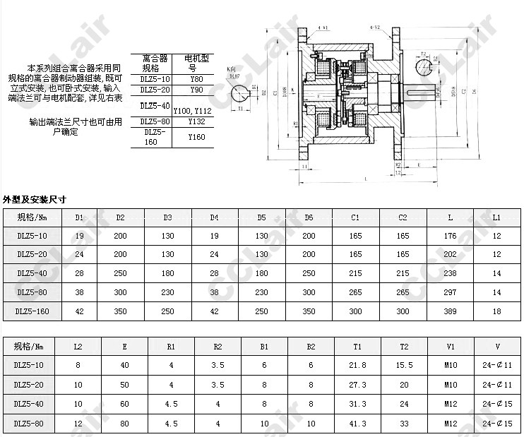 DLZ5-10,DLZ5-20,DLZ5-40,DLZ5-80,DLZ5-160,組合離合器