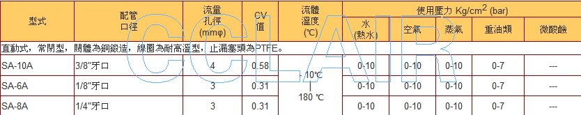 SA-10A,SA-6A,SA-8A,常閉電磁閥