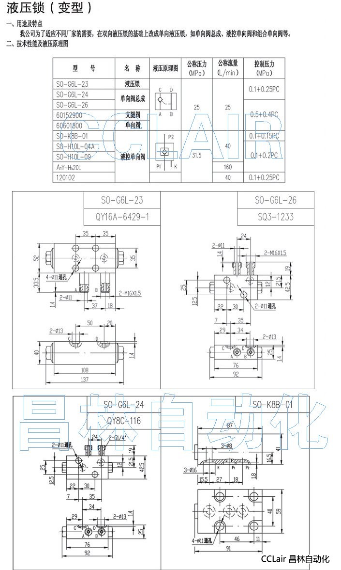 SO-G6L-23,SO-G6L-24,SO-G6L-26,SO-K8B-01,SO-H10L-04A,SO-H10L-09,單向液壓鎖