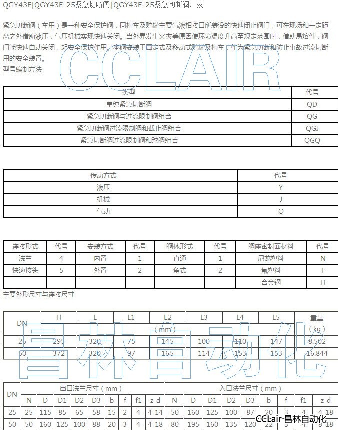 QGY43F-25,緊急切斷閥