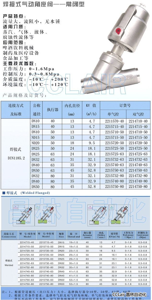 2211570-40,2215715-40,2214710-40,2214715-40,2215710-50,對焊式氣動角座閥