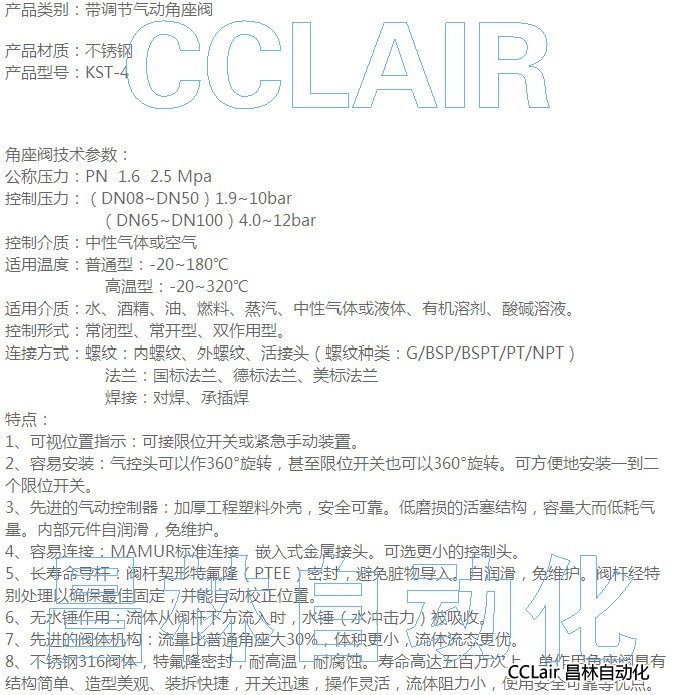 KST-4,2000Y型帶調(diào)節(jié)氣動角座閥