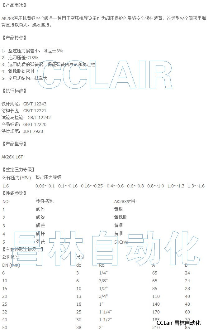 AK28X-16-DN6,AK28X-16T-DN6,AK28X-16-DN10,AK28X-16T-DN10,空壓機(jī)黃銅安全閥