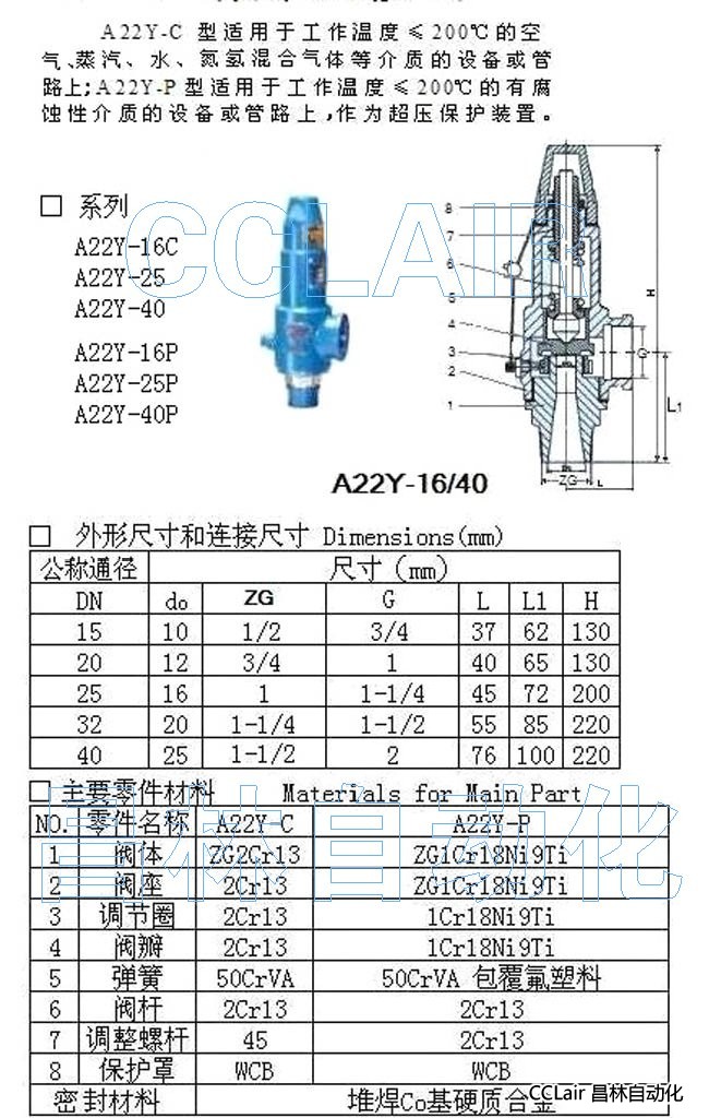 A22Y-16C,A22Y-25C,A22Y-40C,A22Y-16P,A22Y-25P,A22Y-40P,彈簧全啟式安全閥