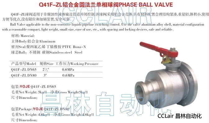 Q41F-ZL-50,Q41F-ZL-DN65,Q41F-ZL-DN80,Q41F-ZL-100,鋁合金圓法蘭單相球閥 |