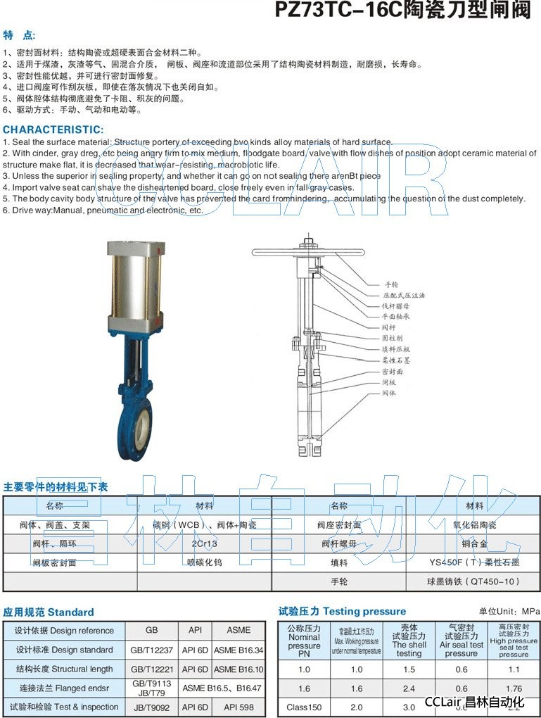 PZ73TC-10C-DN50,PZ73TC-10C-DN65,PZ73TC-10C-DN80,PZ73TC-10C-DN100,陶瓷刀型閘閥