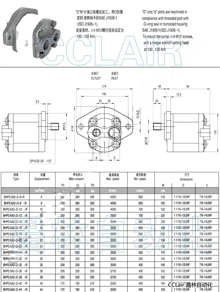 BHP2.6A2-D-6-R,BHP2.6A2-D-8-R,BHP2.6A2-D-10-R,BHP2.6A2-D-12-R,齒輪泵