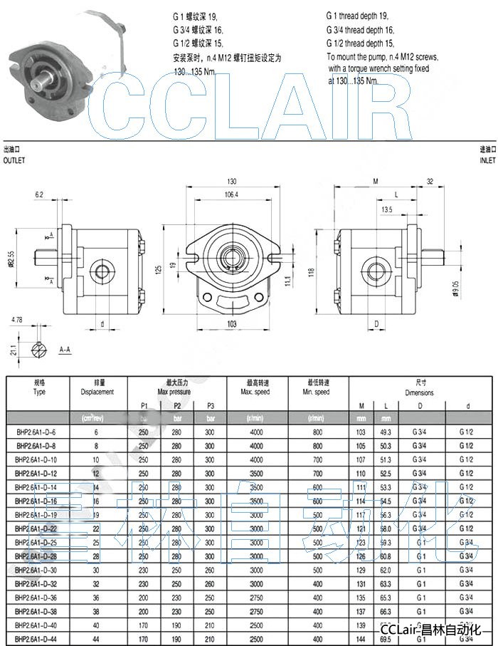 BHP2.6A1-D-6,BHP2.6A1-D-8,BHP2.6A1-D-10,BHP2.6A1-D-12,齒輪泵
