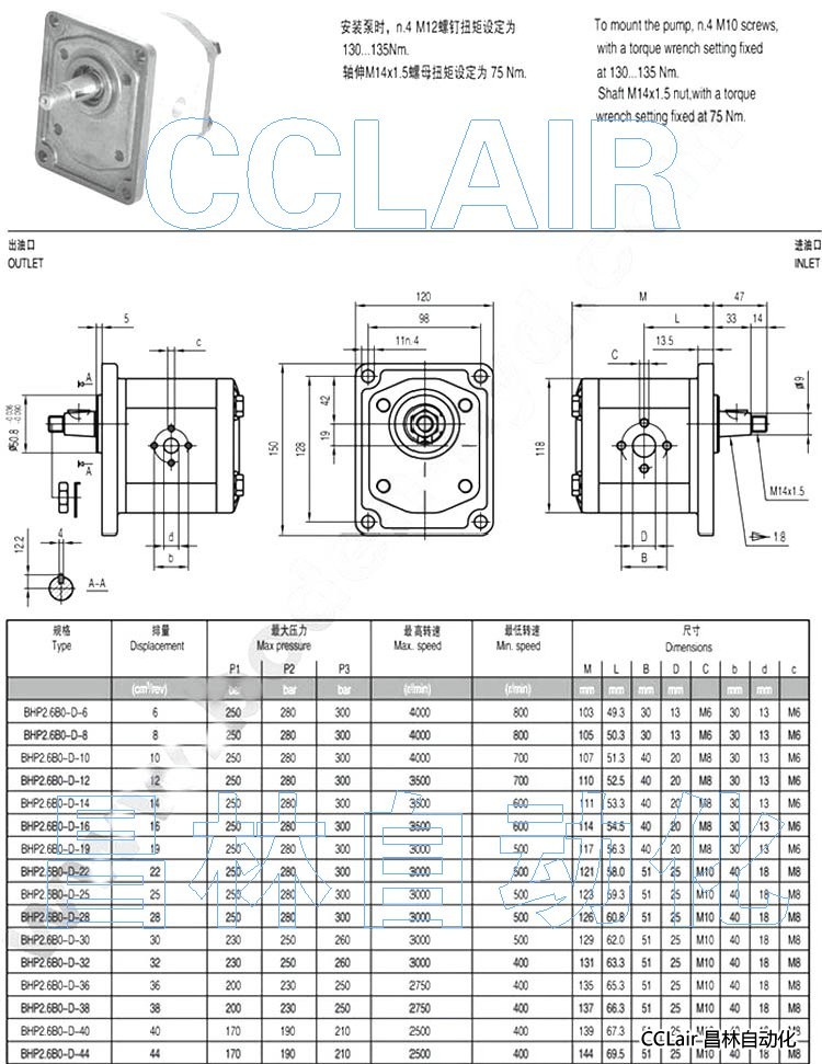 BHP2.6BO-D-6,BHP2.6BO-D-8,BHP2.6BO-D-10,BHP2.6BO-D-12,齒輪泵
