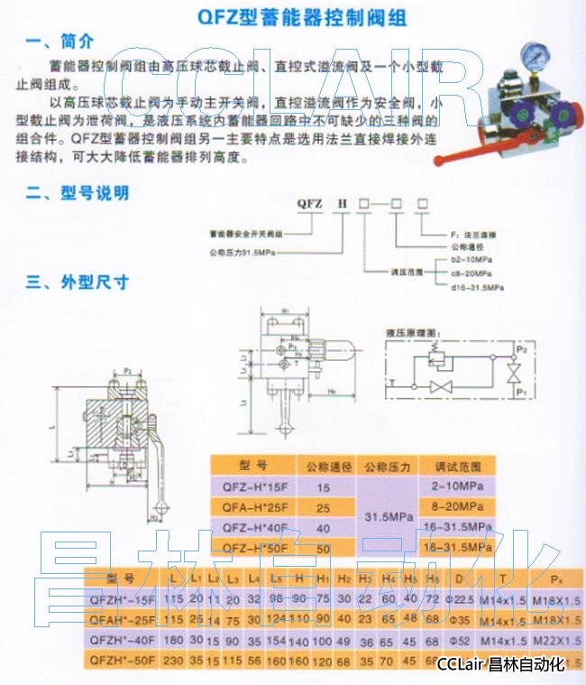 QFZH10-15F,QFZH20-15F,QFZH31.5-15F,QFZH10-25F,QFZH20-25F,蓄能器控制閥組