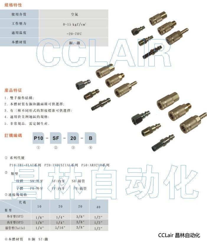 P20-SF10,P20-PF20,P20-SM30,P20-PM40,P20-SH10,P20-PH20,美式快換接頭