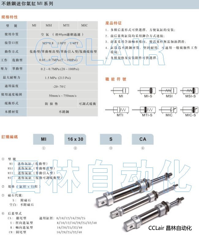 MI-16X10,MSI-16X15,MTI-16X20,MIC-16X25,MI-16X30,MSI-16X40,MI-16X50,不銹鋼迷你氣缸