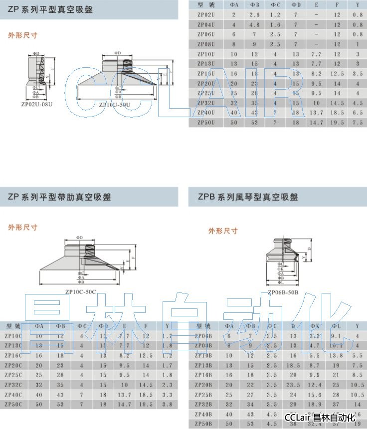 ZP-2-U-N,ZP-4-U-N,ZP-6-U-N,ZP-8-U-N,ZP-10-U-N,ZP-13-U-N,ZP-16-U-N,真空吸盤