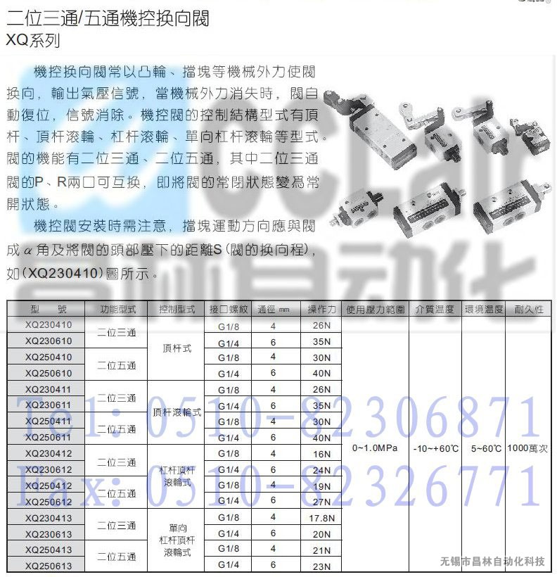 XQ230410,XQ230610,XQ250410,XQ250610,XQ230411,XQ230611,XQ250411,二位三通/五通機控換向閥,生產廠家,價格