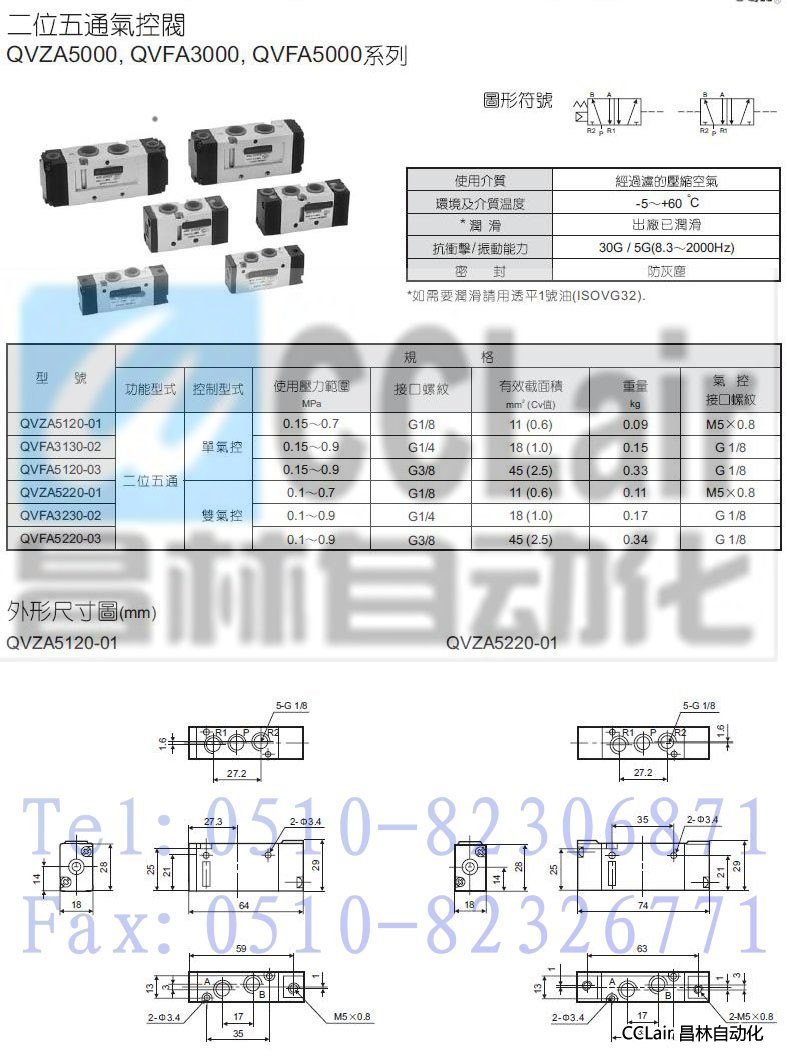 QVZA5120-01,QVZA5220-01,QVFA3130-02,QVFA3230-02,QVFA5120-03,QVFA5220-03,二位五通氣控閥