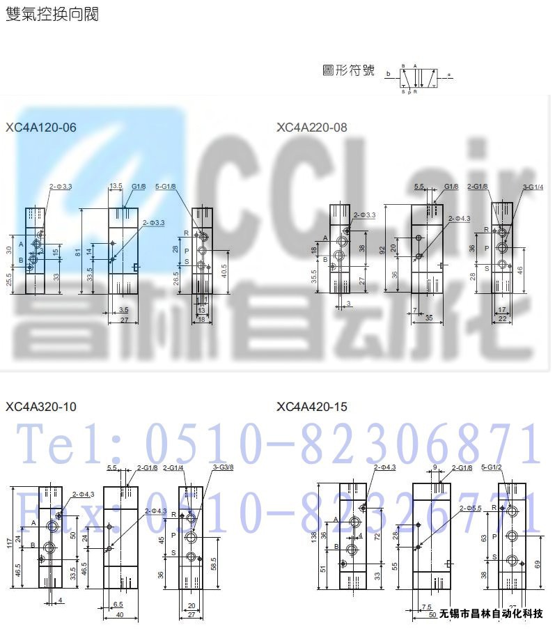 XC4A110-06,XC4A120-06,XC4A210-08,XC4A220-08,XC4A310-10,二位五通氣控?fù)Q向閥