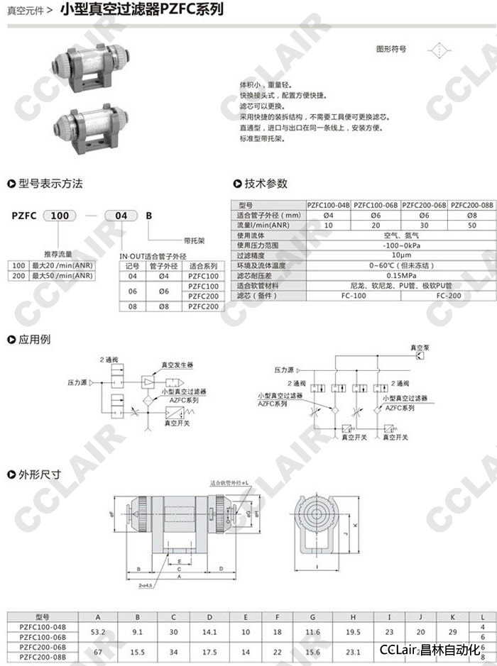 PZFC100-04B,PZFC200-04B,PZFC100-06B,PZFC200-06B,PZFC100-08B,PZFC200-08B,小型真空過濾器