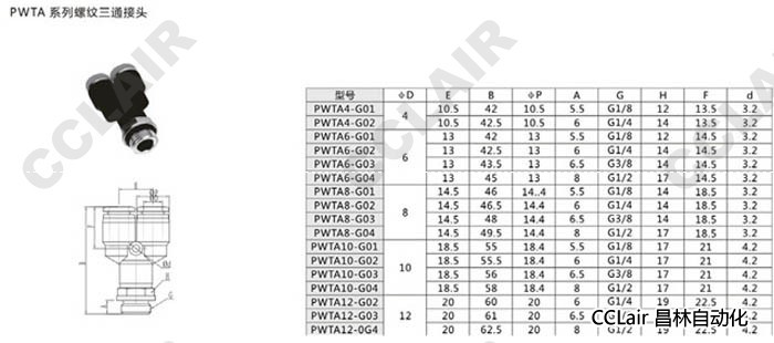 PWTA4,PWTA6,PWTA8,PWTA10,PWTA12,螺紋三通接頭