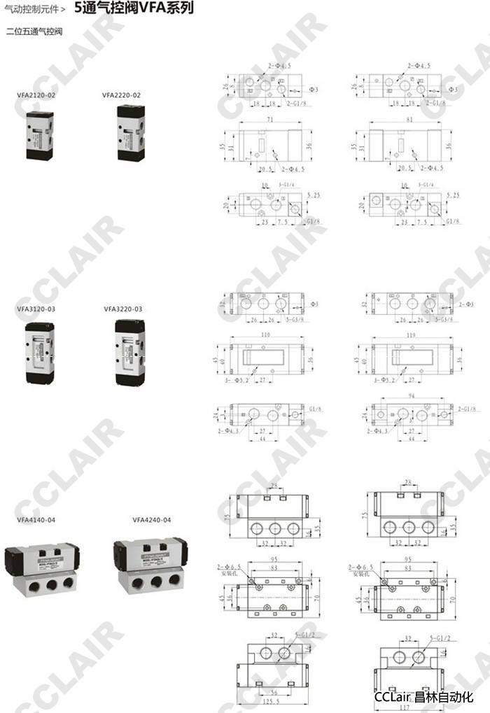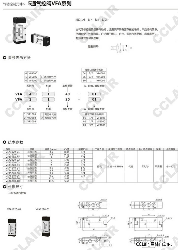 VFA1120-01,VFA1220-01,VFA2120-02,VFA2220-02,VFA3120-03,VFA3220-03,5通氣控閥