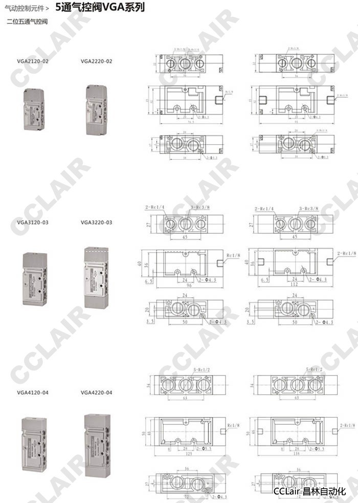 VGA4120-04,VGA4220-04,VGA2120-01,VGA3120-02,VGA4120-03,VGA2220-01,5通氣控閥