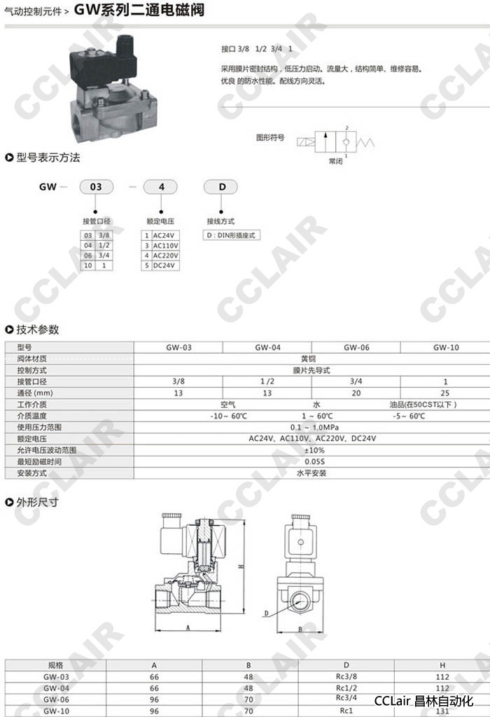 GW-03,GW-04,GW-06,GW-10,二通電磁閥