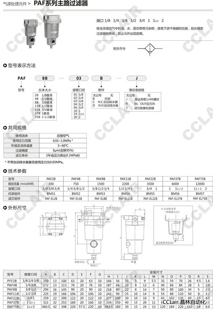 PAF2B,PAF4B,PAF8B,PAF11B,PAF22B,PAF37B,PAF75B,主路過濾器