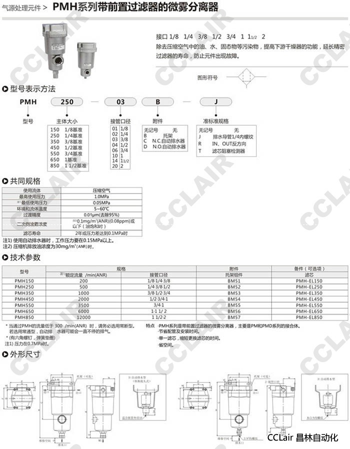 PMH150,PMH250,PMH350,PMH450,PMH550,PMH650,PMH850,帶前置過(guò)濾器的微霧分離器