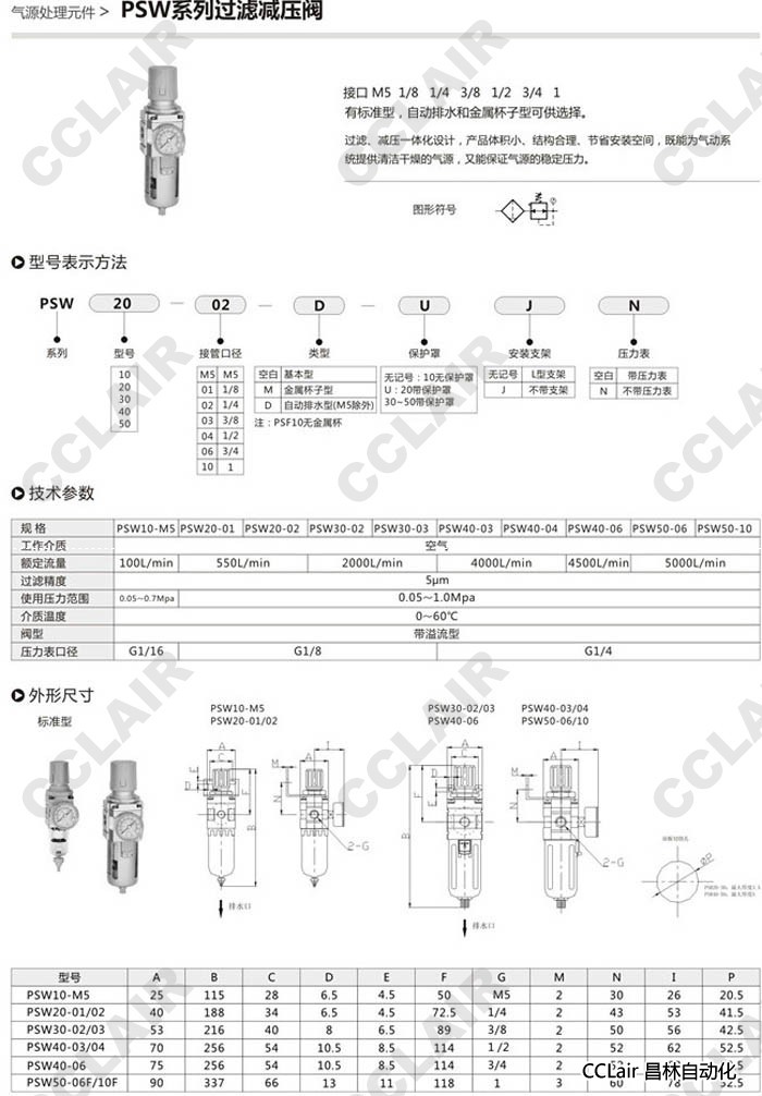 PSW50-MS,PSW50-01,PSW50-02,PSW50-03,PSW50-04,PSW50-06,PSW50-10,氣動(dòng)過(guò)濾減壓閥