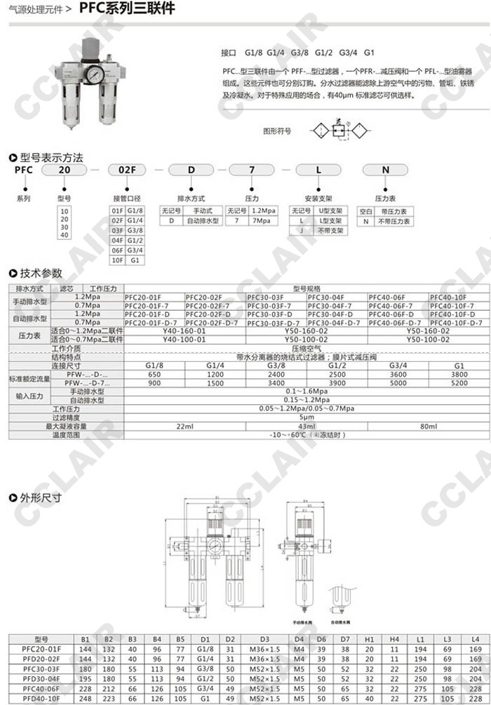 PFC40-01F,PFC40-02F,PFC40-03F,PFC40-04F,PFC40-06F,PFC40-10F,氣動三聯(lián)件