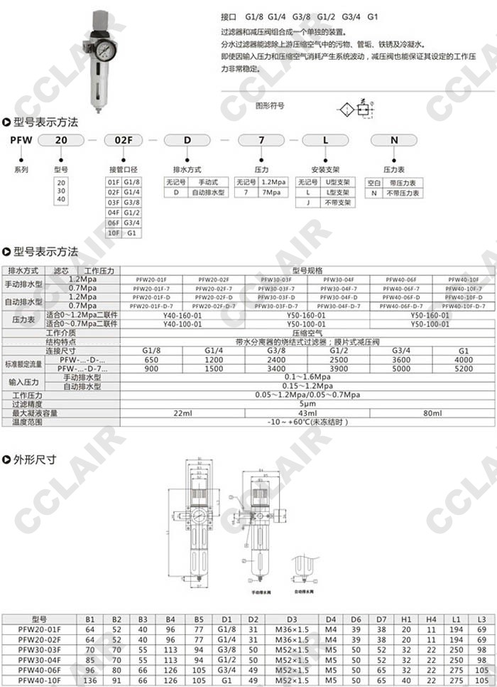 PFW20-01F,PFW20-02F,PFW20-03F,PFW20-04F,PFW20-06F,PFW20-10F,氣動過濾減壓閥