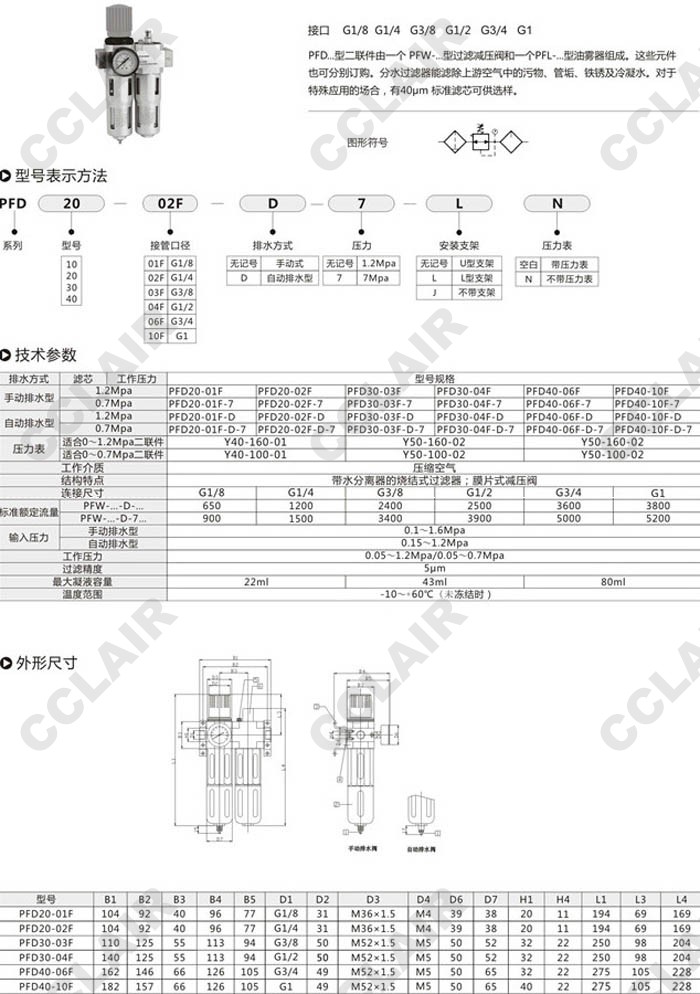 PFD40-01F,PFD40-02F,PFD40-03F,PFD40-04F,PFD40-06F,PFD40-10F,氣動(dòng)二聯(lián)件