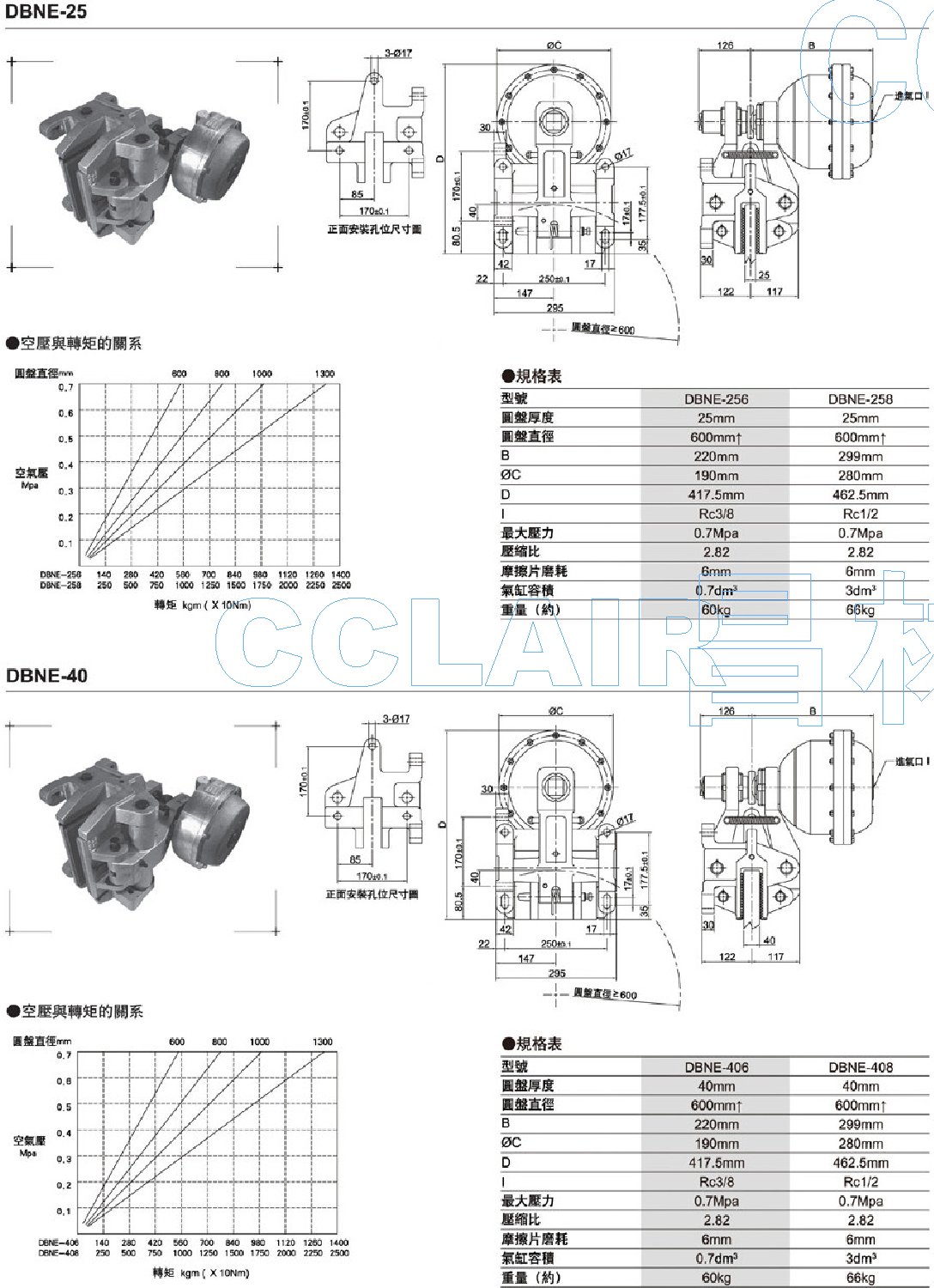 DBNE-256,DBNE-258,DBNE-406,DBNE-408,空壓碟式制動(dòng)器