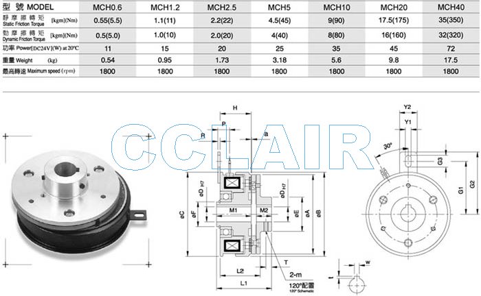 MCH0.6,MCH1.2,MCH2.5,MCH5,MCH10,MCH20,MCH40,電磁式離合器