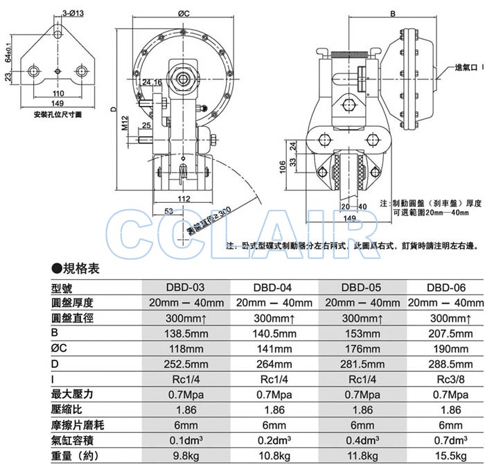 DBD-03,DBD-04,DBD-05,DBD-06,空壓碟式制動器