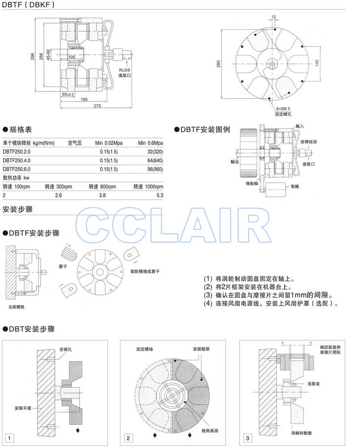 DBTF250.2.0,DBTF250.4.0,DBTF250.6.0,空壓蝶式離合器