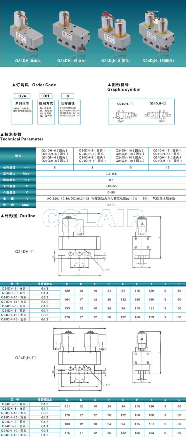 Q24QH-6,Q24QH-8,Q24QH-10,Q24QH-15,Q24Q2H-6,Q24Q2H-8,Q24Q2H-10,Q24Q2H-15,滑柱式換向閥 (圓頭)
