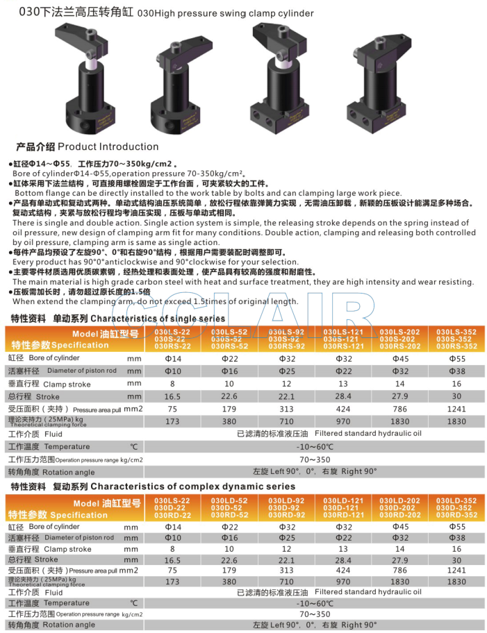030LS-22,030LS-52,030S-92,030S-121,030RS-202,030RS-352,下法蘭高壓轉(zhuǎn)角缸